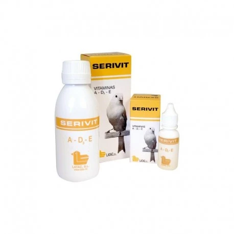DOSIS E INSTRUCCIONES DE USO: Mezclar de 4 a 6 gotas de SERIVIT en un bebedero con agua del grifo (50 ml) o 50 g. de pasta o pienso. Durante tres semanas antes del apareamiento y hasta el final de la puesta, alternando 7 días de tratamiento con otros 7 días de descanso.