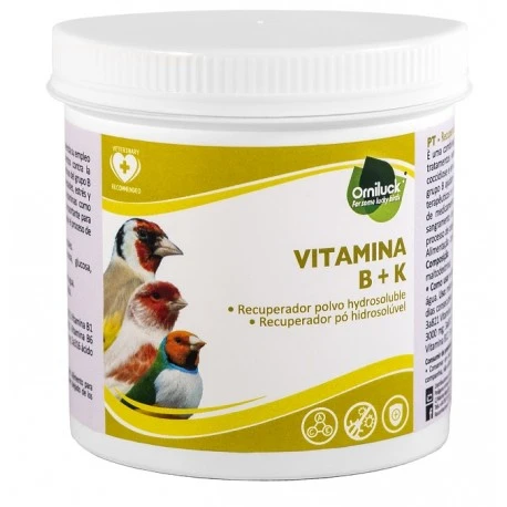 Orniluck Vitamina B + K es una combinación de vitaminas del grupo B y vitamina K. Se recomienda su empleo después de tratamientos veterinarios con antibióticos, sulfamidas, tratamientos contra la coccidiosis y en caso de hemorragia o diarreas con sangre.